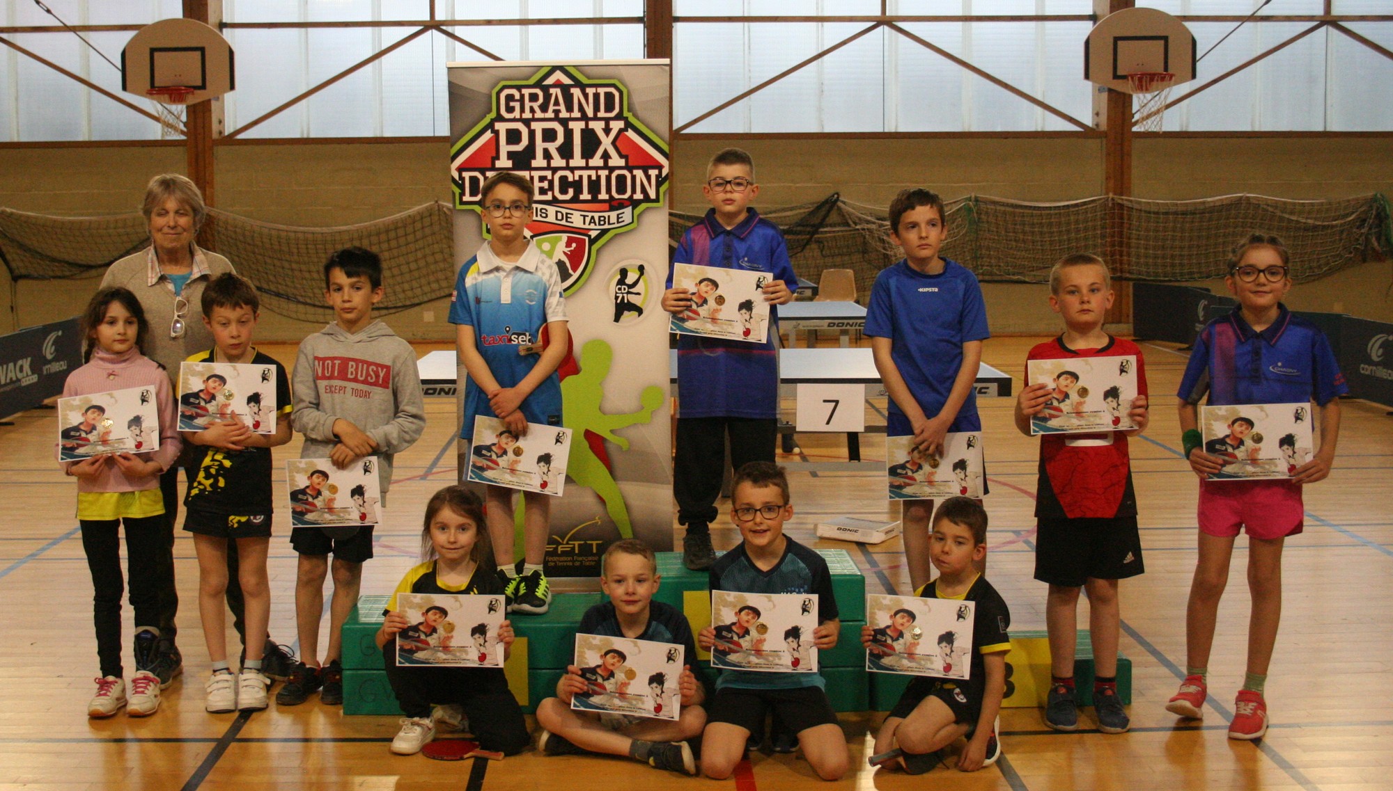 Clarice debout 1ere à droite et Tymeo avec les joueurs du tableau 3
