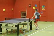 Il commence bien contre Nicole DELABORDE et la gène énormément avec ses démarrages en rotation, il l’emporte en 3 manches.